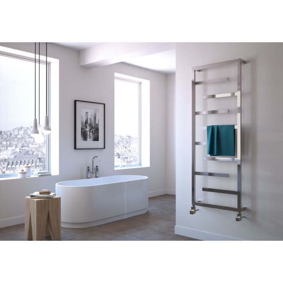 Dieses Modell verleiht dem traditionellen Leiterkonzept von Heizkörpern eine neue Dimension – dank der asymmetrisch verteilten Rohre bietet es nicht nur optische Originalität, sondern auch praktischen Platz zum gleichzeitigen Erwärmen mehrerer Handtücher.