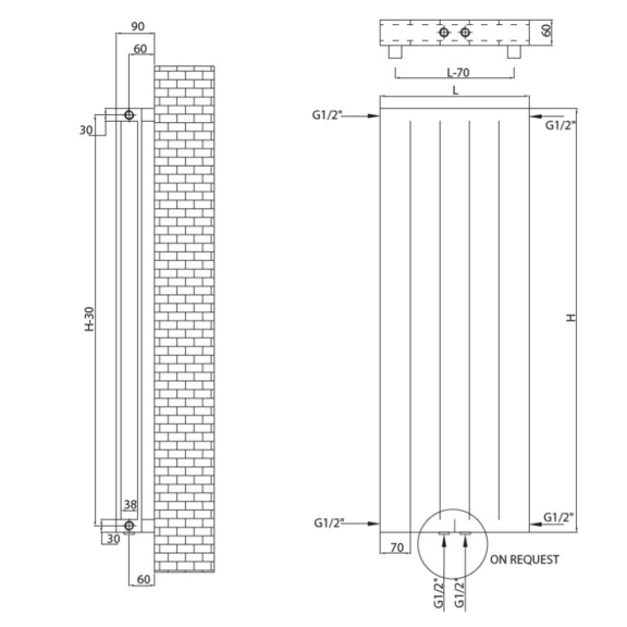 Seine glatte Frontausführung besteht aus einem System vertikaler Winkellamellen, die in zwei parallelen Reihen angeordnet sind und der Frontplatte ein kompaktes und elegantes Erscheinungsbild verleihen.