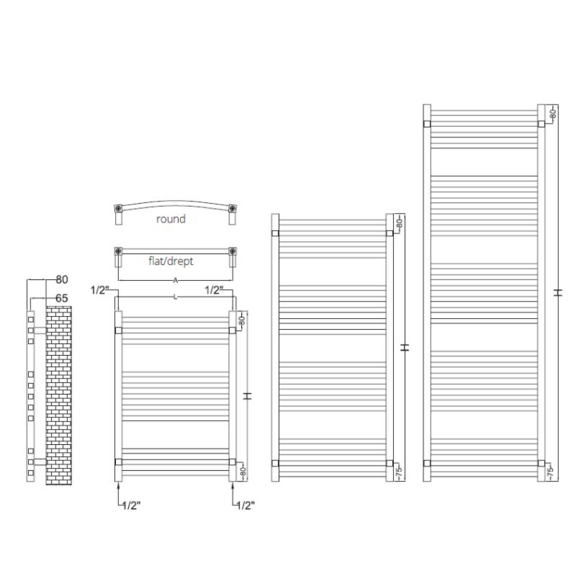 Die waagerechten Lamellen aus Vierkant-Stahlprofilen sind in gleichmäßigen Abständen angeordnet und bieten ausreichend Platz zum bequemen Aufhängen von Handtüchern und sorgen gleichzeitig für eine gleichmäßige Wärmeverteilung.