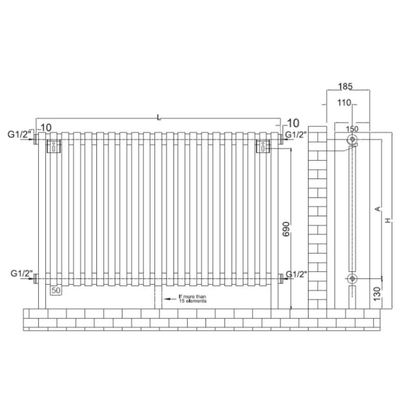 Anschlusstyp: V – der Heizkörper ist mit einem unteren rechten oder linken Anschluss im Abstand von 50 mm ausgestattet, was eine ästhetischere Installation, eine bessere Temperaturregulierung ermöglicht und ideal für moderne Heizsysteme, auch Niedertemperatursysteme, ist.
