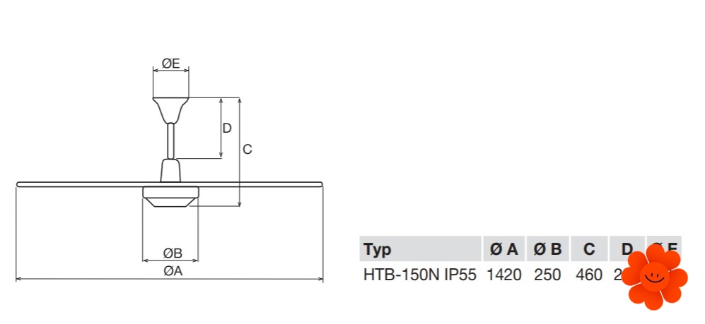 Deckenventilator Soler & Palau HTB 150 RC IP55 hat robuste Konstruktion und deshalb eignet sich vor allem für die Belüftung von größeren Räumen wie Industriehallen, Kneipen, Hotels, Sporthallen, Büros, Bibliotheken, Abflughallen usw. Der Ventilator soll vor allem im Winter angewendet werden, wenn Sie durch permanente Belüftung von hohen Räumen mit markanter Wärmedifferenz zwischen Boden und Decken den Temperaturausgleich im Raum erreichen können. Damit verkleinern Sie deutlich Energieaufwand und Heizkosten. Für die Maximierung des Effekts ist es passend, um die Differenzthermostaten mit zwei Abtastern anzuwenden, die bei der Einstellung von Temperaturunterschied den Ventilator einschalten. Der dann mischt Warm- und Kaltluft, um ausgeglichene Raumtemperatur zu erreichen.