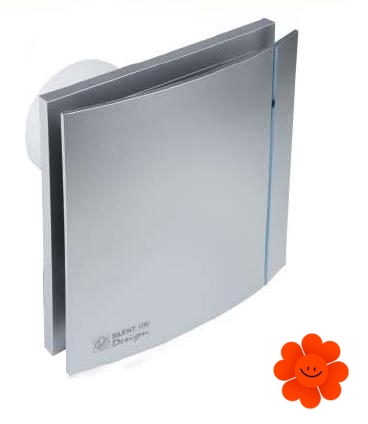 Ventilator Silent 100 Design Silver CHZ ist ein höheres Modell mit einstellbarem Nachlauf bis zu 30 min. (Sie können ihn auch mit dem Knopf einschalten), Hygrostat, Rückluftsperrklappe und Kugellagern. Er hat elegante silberfarbene Ausführung.