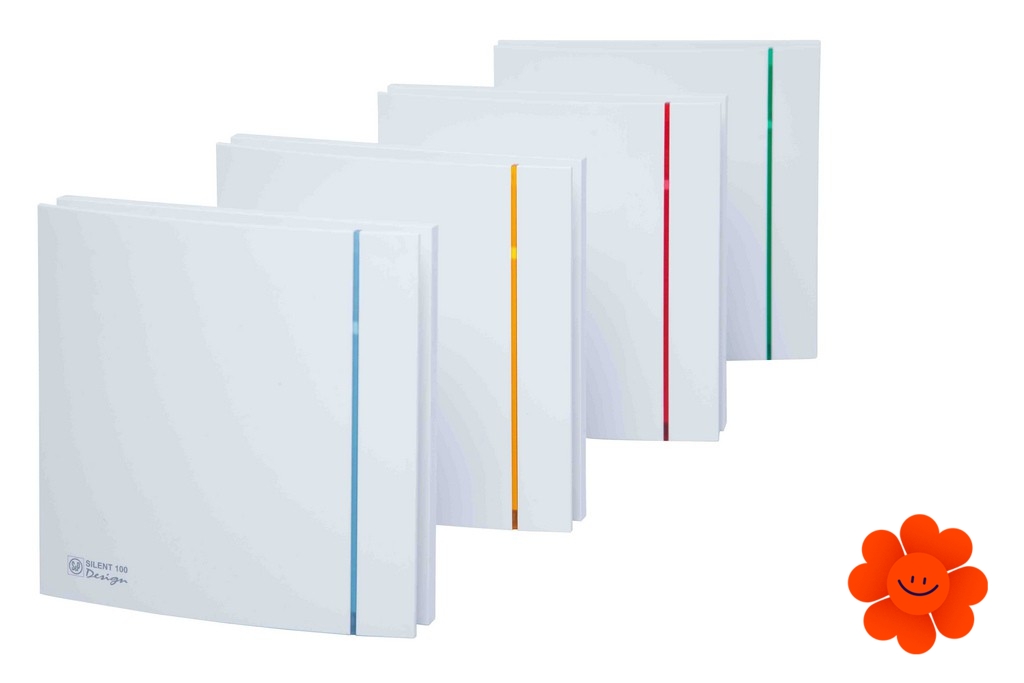 Silent 100 Design Silver CHZ ist besonders leiser Ventilator mit dem Geräuschpegel nur 26 dB(A) und mit niedrigem Energieverbrauch nur 8 W. Zum Bestandteil der Packung gehören auch 4 austauschbare Farbstreifen.