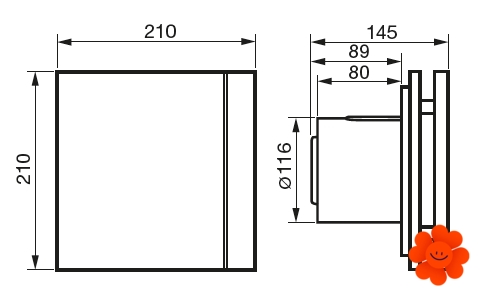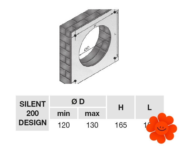 Der Ventilator ist für die Wandmontage bestimmt. Sein Asynchronmotor ist mit dem Überlastungsschutz ausgestattet. Die Montage ohne Beschränkung horizontal oder vertikal. Befestigung mit vier Schrauben unter das Ventilatorgitter. Die Ventilatoren Silent eignen sich für kurze Luftkanäle mit niedrigem Druckverlust oder zur Entlüftung gerade durch die Wand.