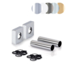 Das Set enthält 2x 160 mm Rohrteil (die Möglichkeit der Verkürzung nach Bedarf), 2x quadratisches Wand- / Bodenstück und Gummidichtungssatz mit verschiedenen Durchmessern für die Befestigung der Rohrteile.