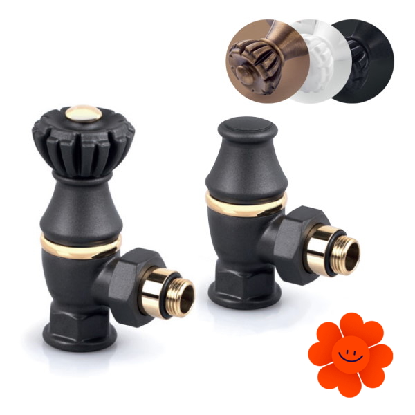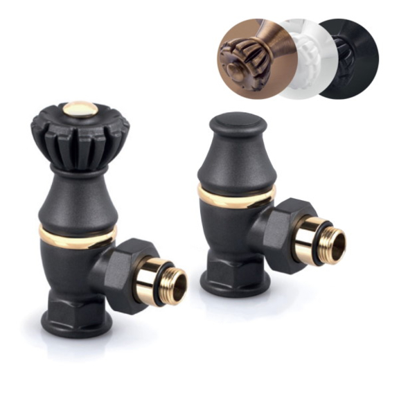 Manuelles Retro-Eckventilset – Paar 0325+0323 (ein Zuleitungsventil, ein Ableitungsventil und 2x Gewinde).