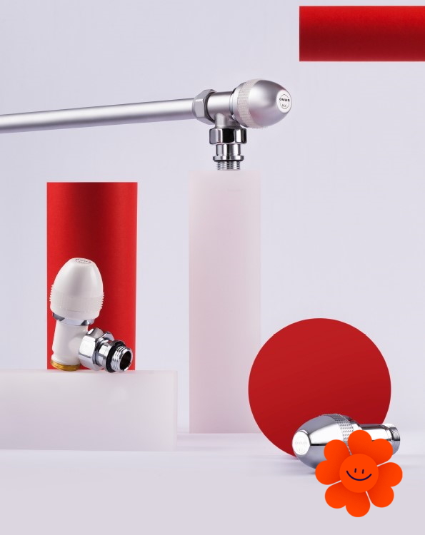 Manuelle Ventile enthalten ein abnehmbares Designköpfchen Serie Ovus, das durch einen thermostatischen Kopf ersetzbar ist. Sie dienen zur Flüssigkeitsregulation im Heizsystem.