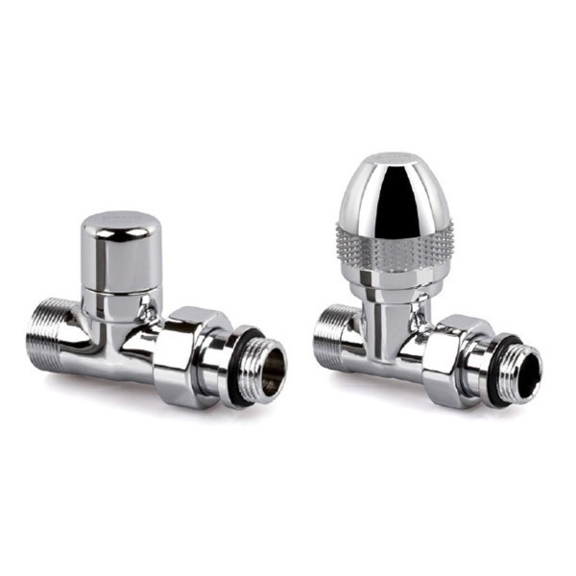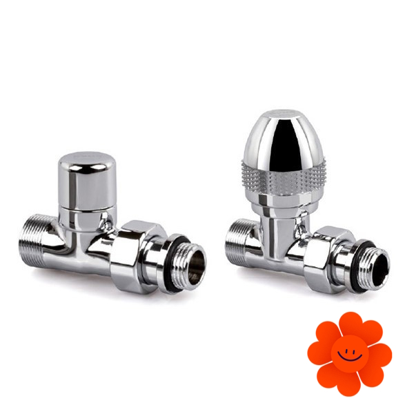 Direktes manuelles Design-Ventilset mit einer Abänderungsmöglichkeit zum thermostatischen Ventil – Paar 0446+0464 (ein Zuleitungsventil, ein Ableitungsventil und 2x Gewinde).