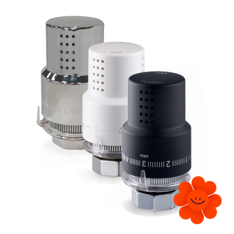 Thermostatische Ventile mit dem Designkopf Aria dienen zur Flüssigkeitsregulation im Heizsystem. Sie sind so entworfen, damit sie die konstante eingestellte Temperatur im Raum einhalten und zugleich energiesparend sind.
