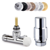 Rechtes thermostatisches Design-Eck-Mittelventil – das Set enthält ein Eckventil mit einer Lanze (0646), einen thermostatischen Kopf Domus und 2x Gewinde.