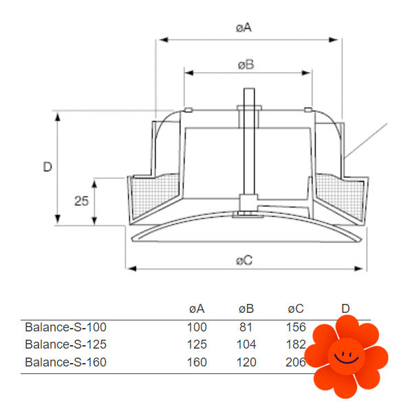 Balance-S ist ein rundes Zuluft-Tellerventil, das aus dem Körper und verstellbaren aerodynamisch geformten Kegel besteht. Es kann für die Decken- oder Wandmontage wie auch für die Abluft verwendet werden.