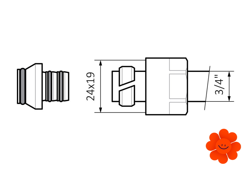 Terma Adapter dient als Reduzierstück zur Verbindung des Ventils mit    AL-PEX Röhrenleitung mit dem Gewinde G 24-19-Ø16x2.