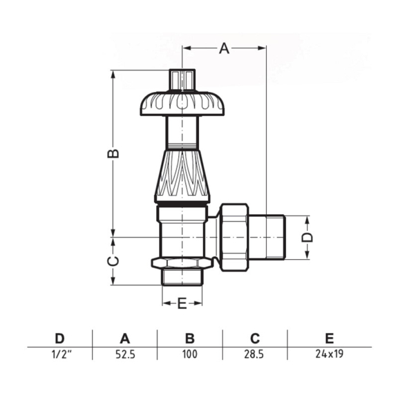 - Anschlussgewinde auf dem Heizkörper: G 1/2"
