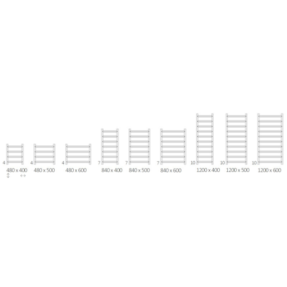 Verfügbare Versionen: Wasser-, Strom- und Kombiheizung. Heizleistung: 135 – 732 W.