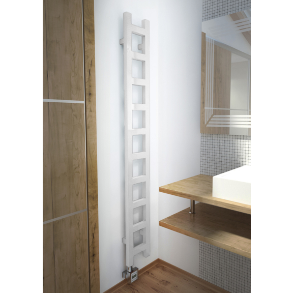 Diese Variante ist ein Wandheizkörper. Sein funktionelles und modernes Design unterstützt die Konstruktion in klassischer Leiterform, die aus Rechteckstahlrohrprofilen mit Ausmaß von 30x40 mm besteht.