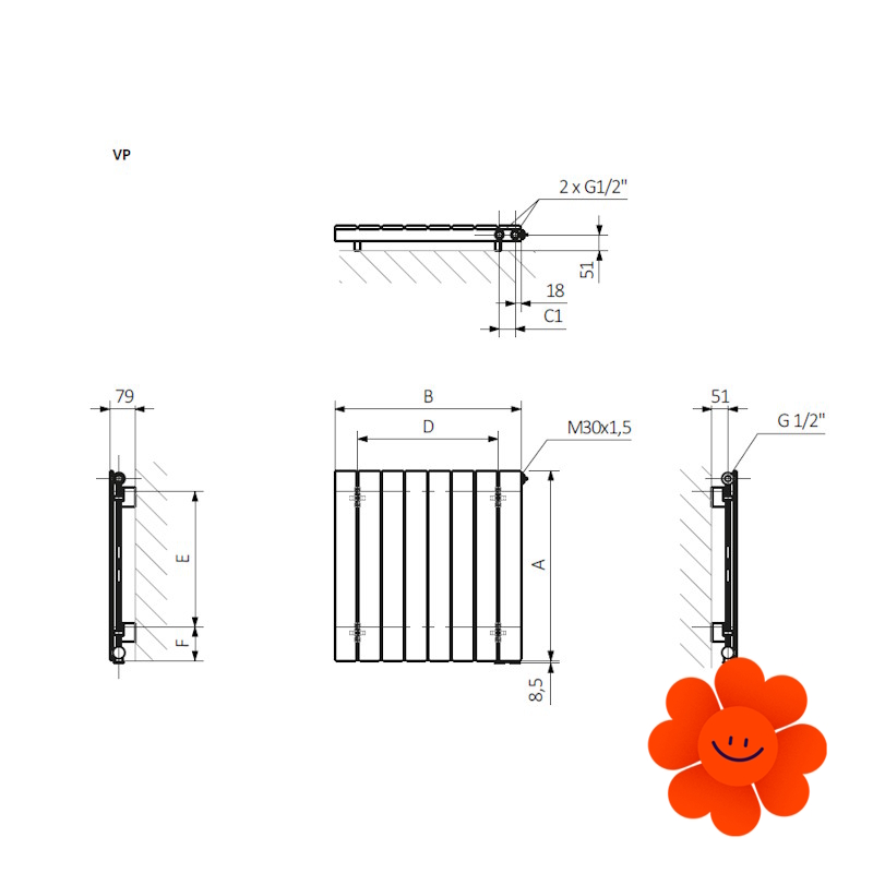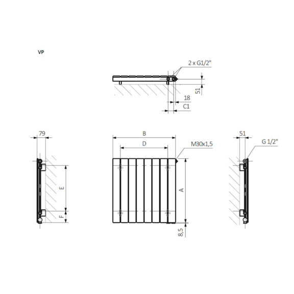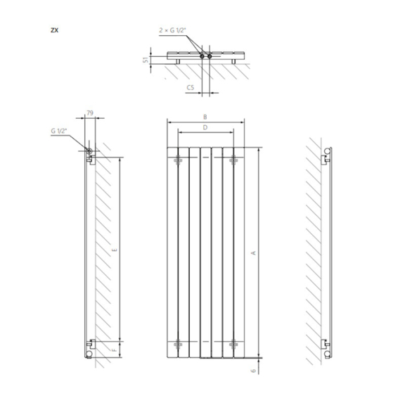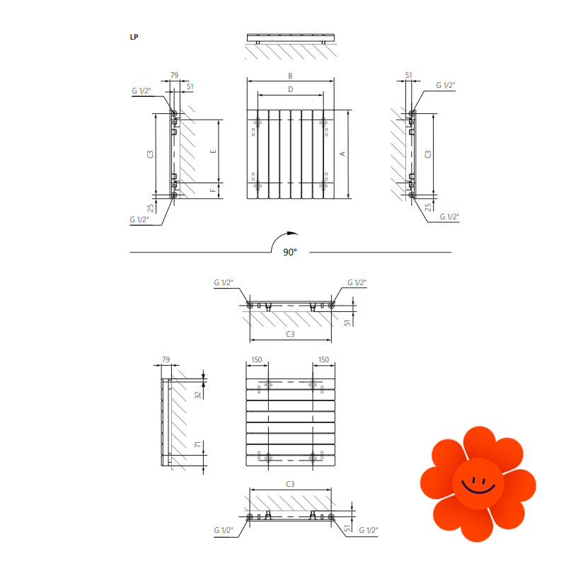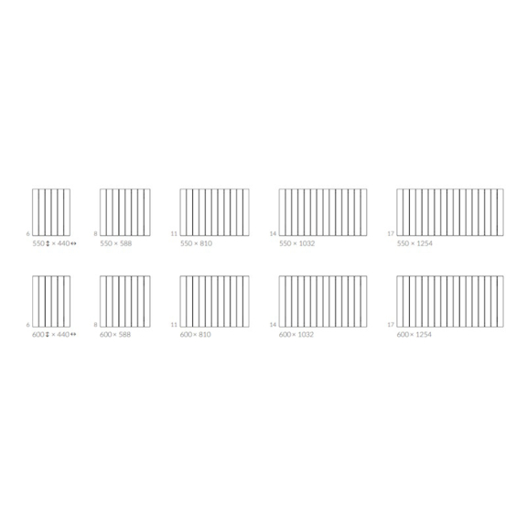 Bei der vertikalen Ausführung des Heizkörpers mit einer Höhe von 550–600 mm sind die Anschlüsse LP, VP, VL verfügbar, während bei Höhen von 1000–1800 mm nur die Anschlüsse LP und ZX verwendet werden können.