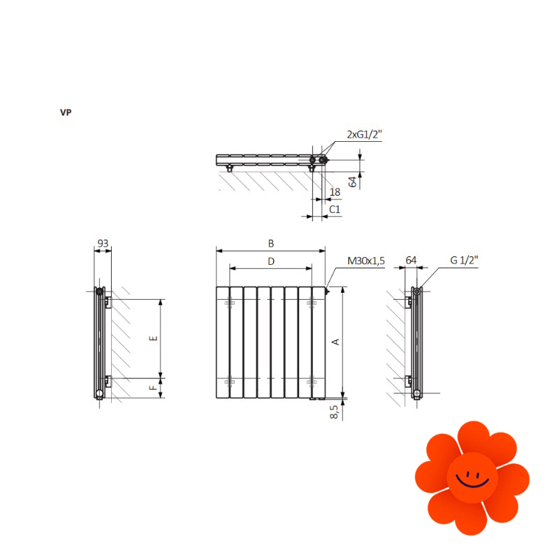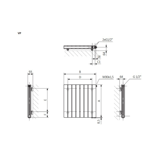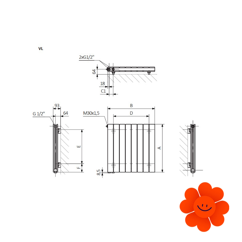 Verfügbare Versionen: Wasserheizung. Heizleistung: 429 - 1628 W.