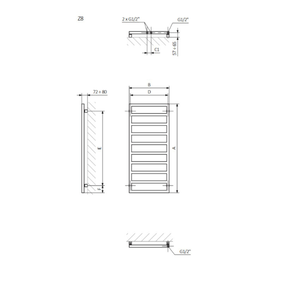 Verfügbare Versionen: Wasserheizung. Heizleistung: 217 - 707 W.