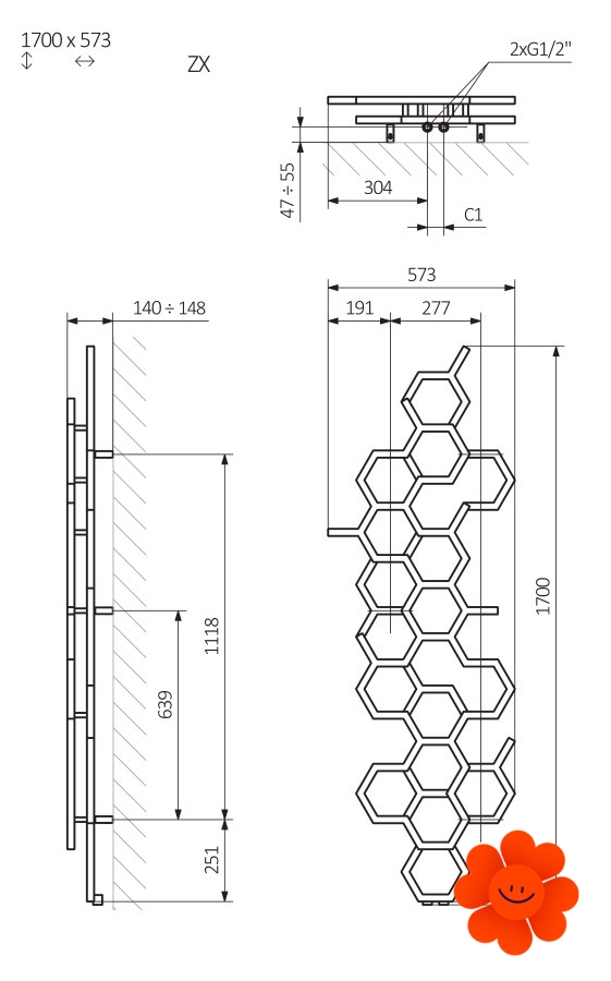 Falls Sie sich für ein anderes Ausmass oder Farbausführung interessieren, schauen Sie sich an auch TERMA Hex Wasserdesignheizkörper.