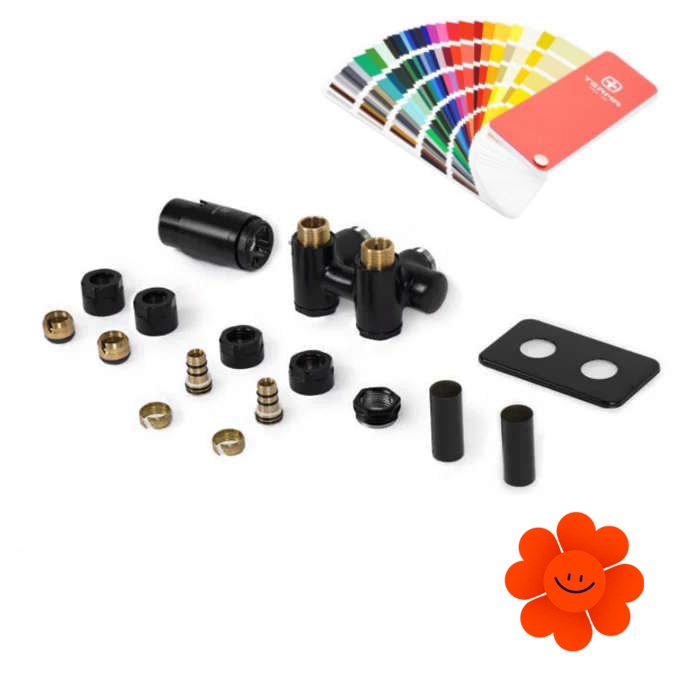 Das Thermostatset mit T-Stück der Marke Terma, mit der Möglichkeit einer individuellen Farbwahl nach Maß, ermöglicht eine perfekte Abstimmung auf jeden Heizkörper oder andere Zubehörteile.