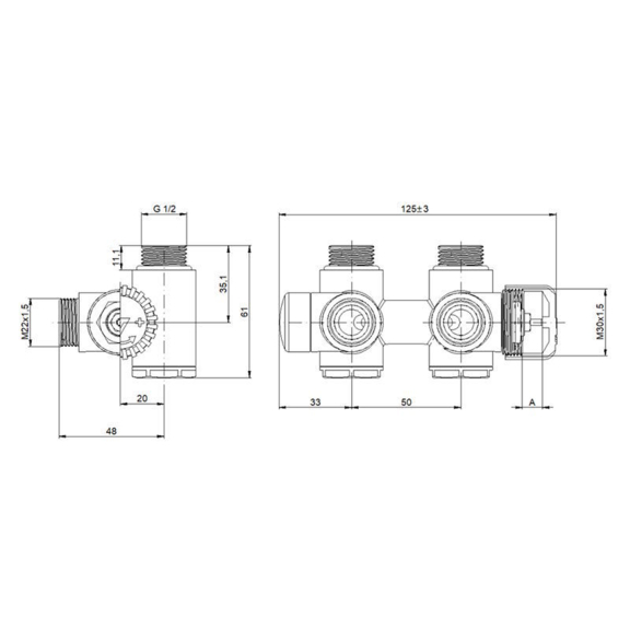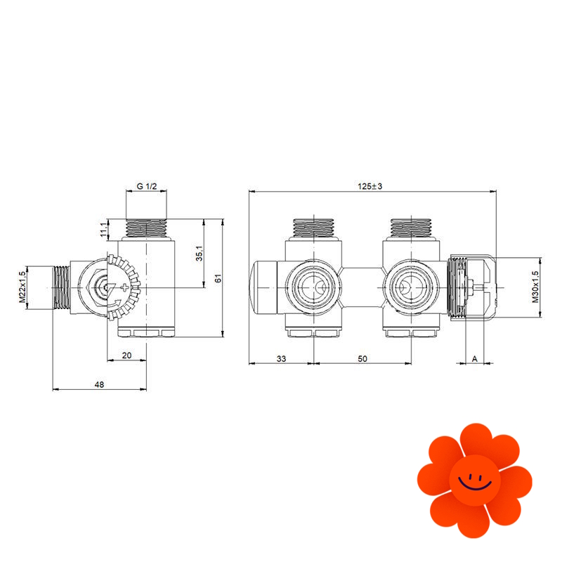 - Anschlussgewinde des Thermostatkopfes: M30×1,5