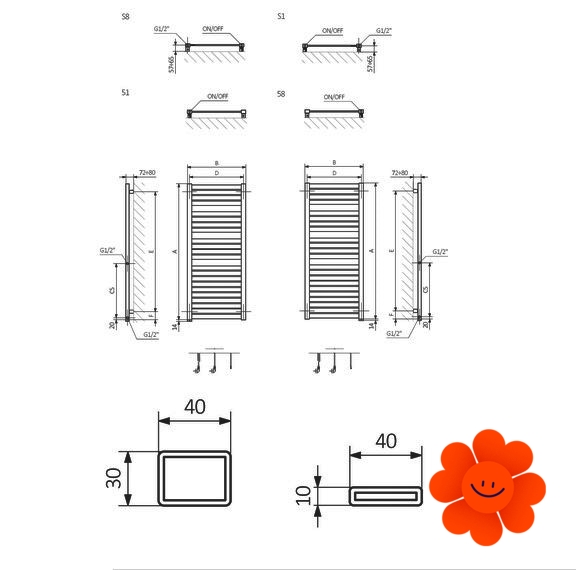 6 verfügbare vertikale Ausführungen und breite Palette von Farbvarianten. Erhältlich in der Ausführung mit dem elektrischen Betrieb. In unserem Angebot finden Sie auch das Grundmodell Mantis mit dem Warmwasser-Betrieb. Wärmeleistung: 400-800 W.