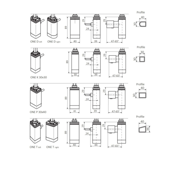 - ONE T - 36x40x89 mm (passend für elektrischen Heizkörper Dexter ONE und Dexter Kombi)