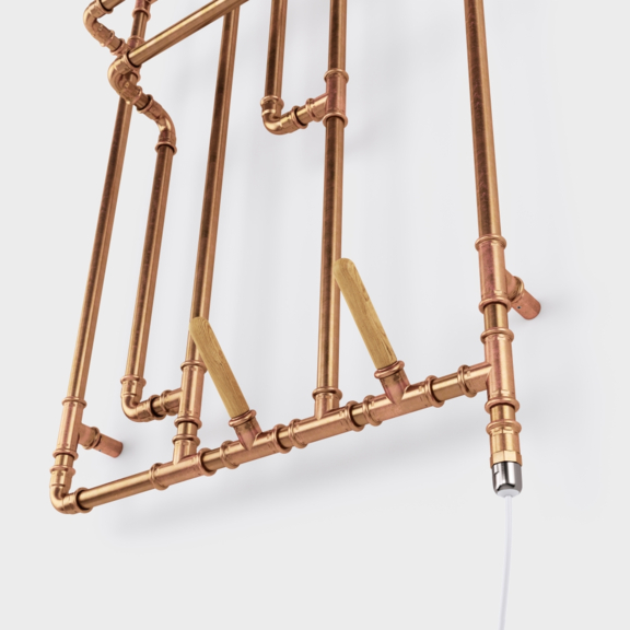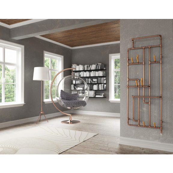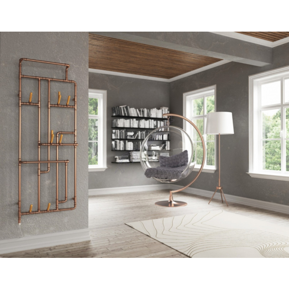 Der Heizkörper TERMA Pajak ist aus Kupfer hergestellt, deshalb ändert er mit der Zeit seine Farbe. Mit seinem Platin-Look in Verbindung mit Holzelementen erfüllt er die ästhetische Funktion in jedem modernen Interieur.