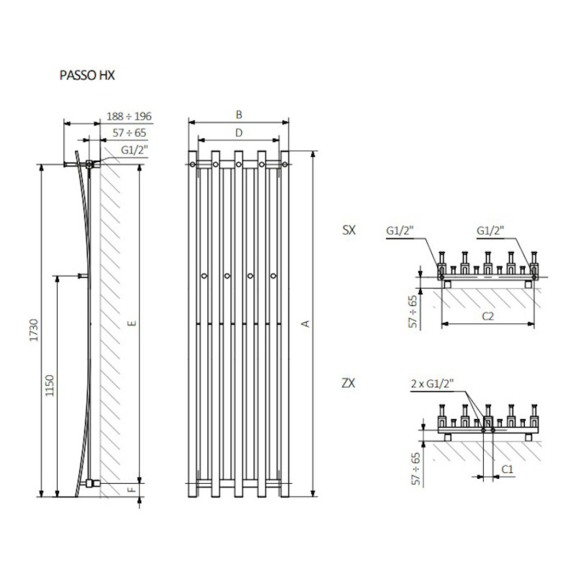 Der vertikale Heizkörper TERMA Passo HX ist ein einzigartiger Heizkörper mit Hakenreihen. Sein Design verbindet gerade und gebogene Profile, was dem Heizkörper ein einzigartiges Aussehen gibt. Dank seiner Vielfalt ist er in alle Räume geeignet, am besten bewährt er sich aber im Flur oder Bad.