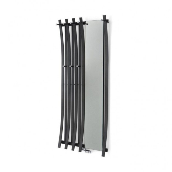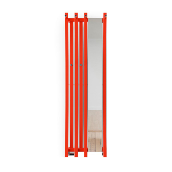 Der vertikale Heizkörper TERMA Passo HX ist ein einzigartiger Heizkörper mit einem Spiegel und Hakenreihen. Sein Design verbindet gerade und gebogene Profile, was dem Heizkörper ein einzigartiges Aussehen gibt. Dank seiner Vielfalt ist er in alle Räume geeignet, am besten bewährt er sich aber im Flur oder Bad.
