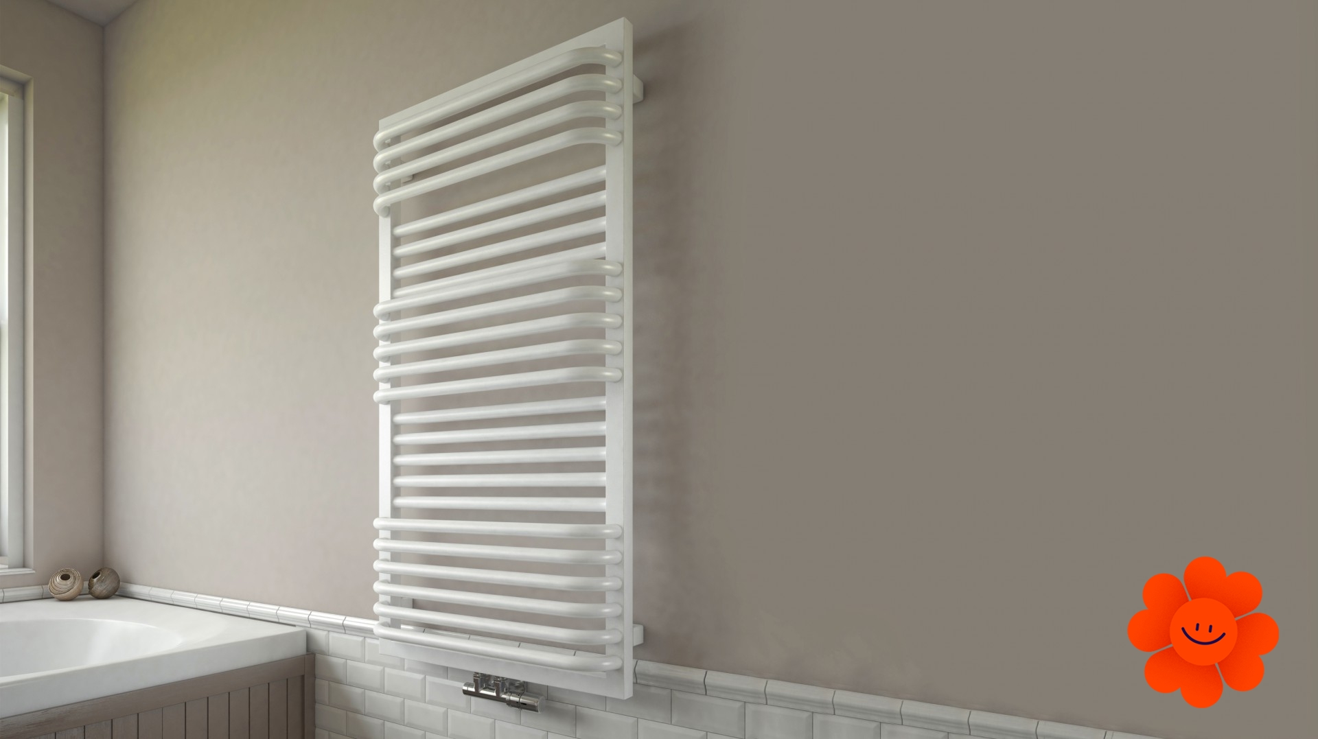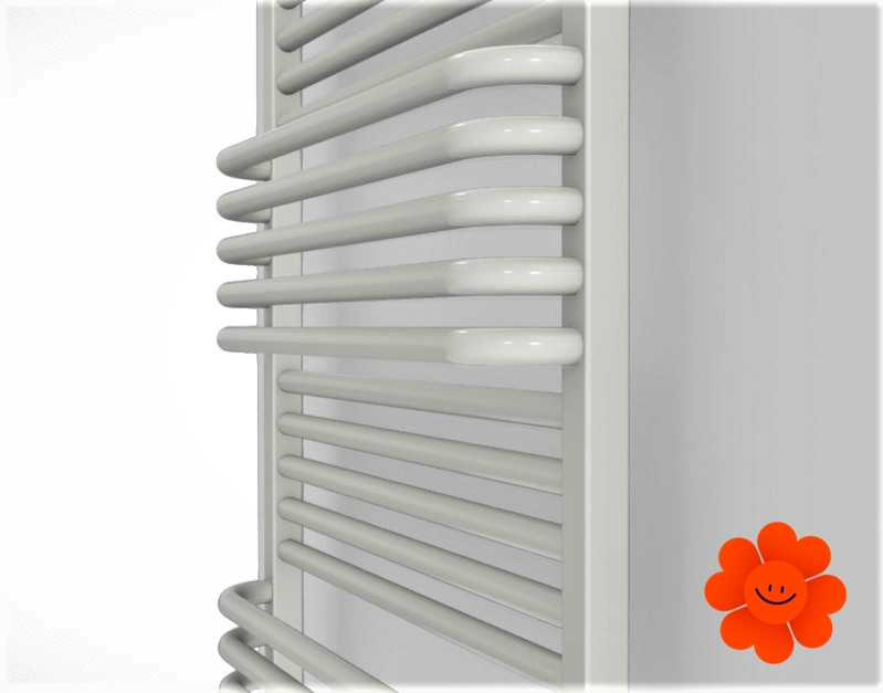 Für populären Rahmenheizkörper TERMA POC 2 ist funktionelle Anordnung der Röhren typisch, und damit ist freier Zugang zu den getrockneten Sachen gesichert. Kugelförmige, auf den Seiten gerundete Röhren einigt ein eleganter Rahmen. Klassische Form des Badheizkörpers, hoch praktisch und zugleich elegant.