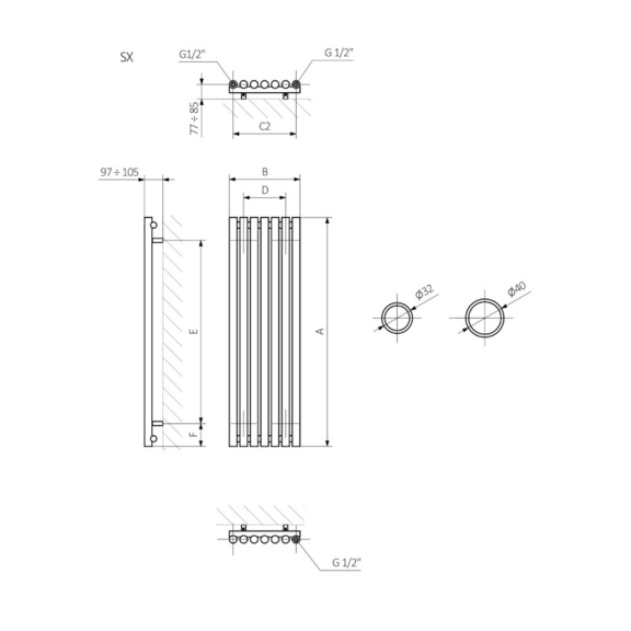 Die Verfügbarkeit sowohl vertikaler als auch horizontaler Abmessungen sorgt für Flexibilität bei der Platzierung des Heizkörpers. Das einzigartige Design mit massiven Rohren verleiht dem Raum Charakter und eine harmonische Ästhetik.
