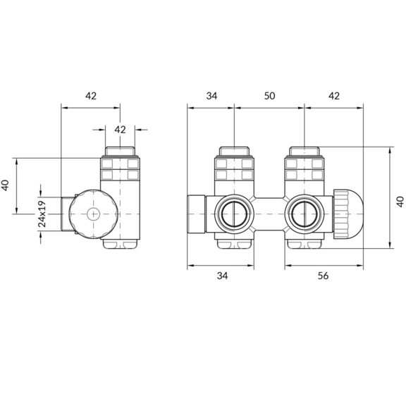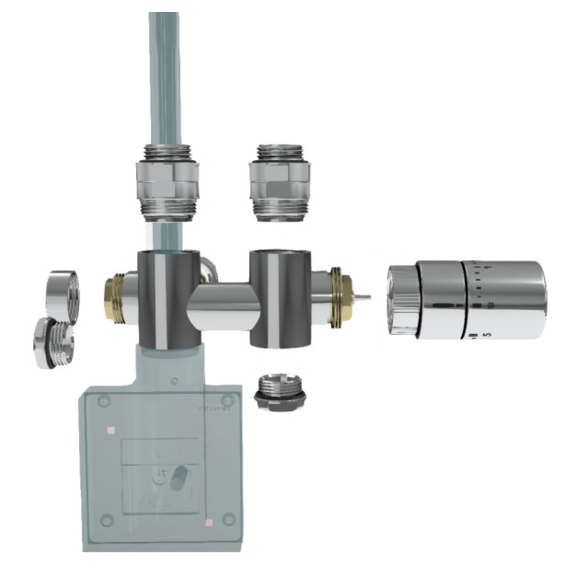 Terma Thermostatisches Eck-Mittelset für einen kombinierten Anschluss – rechts