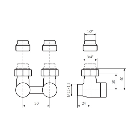 • Anschlussgewinde am Heizkörper: G 3/4", inklusive Reduktion zu 1/2“