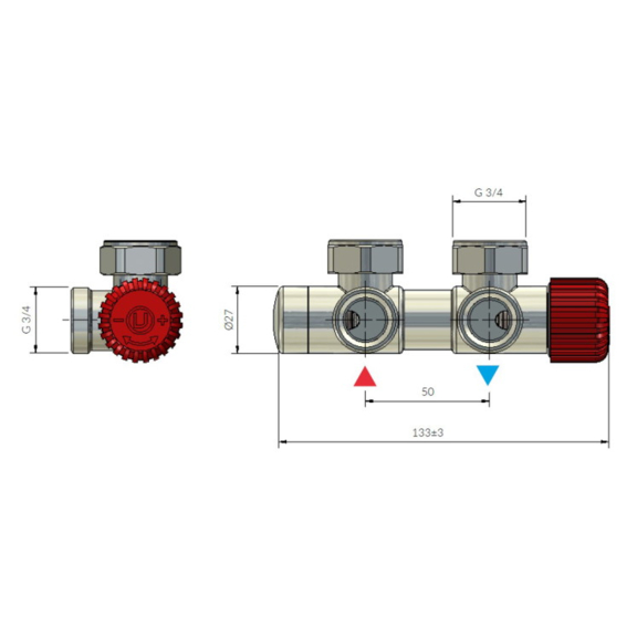 • Anschlussgewinde am Heizkörper: G 3/4", mit Adapter G1/2"