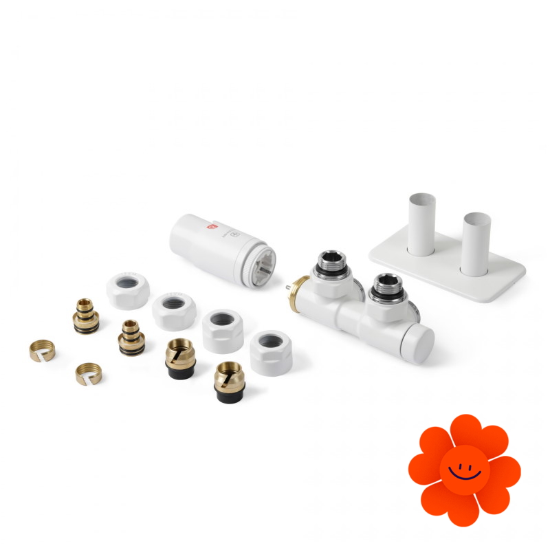 Terma TWINS ALL IN ONE Thermostatisches Eck-Mittelventilset - Rechts RAL 9016