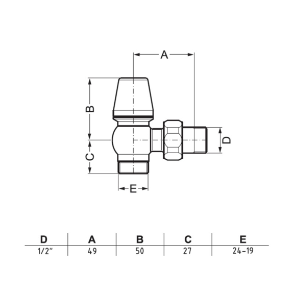 - Anschlussgewinde auf dem Heizkörper: G 1/2"