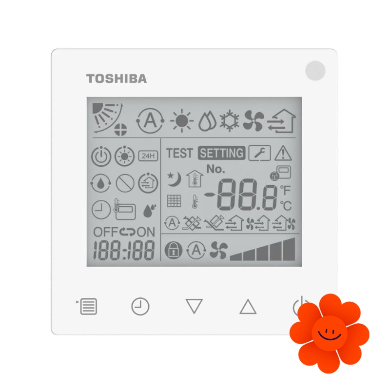 Der kompakte kabelgebundene Controller Toshiba RBC-ASCU32Y-E bietet eine bequeme und intuitive Steuerung über fünf Sensortasten.