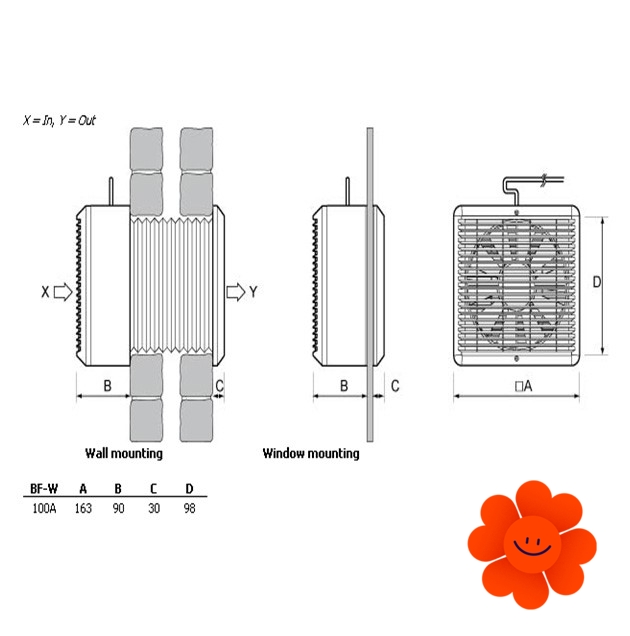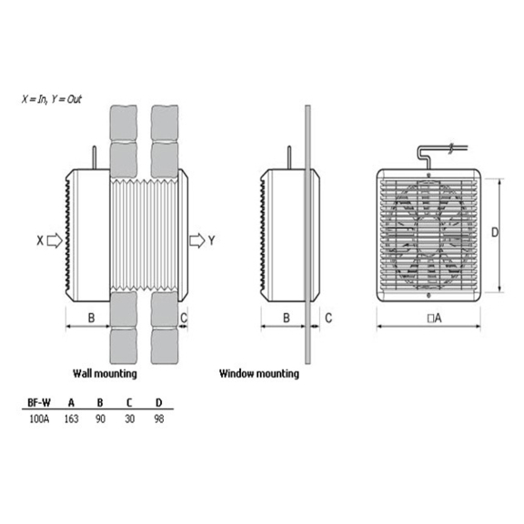 Axialventilator BF-W 100A eignet sich für die Montage an Fenster bzw. durch die Wand.