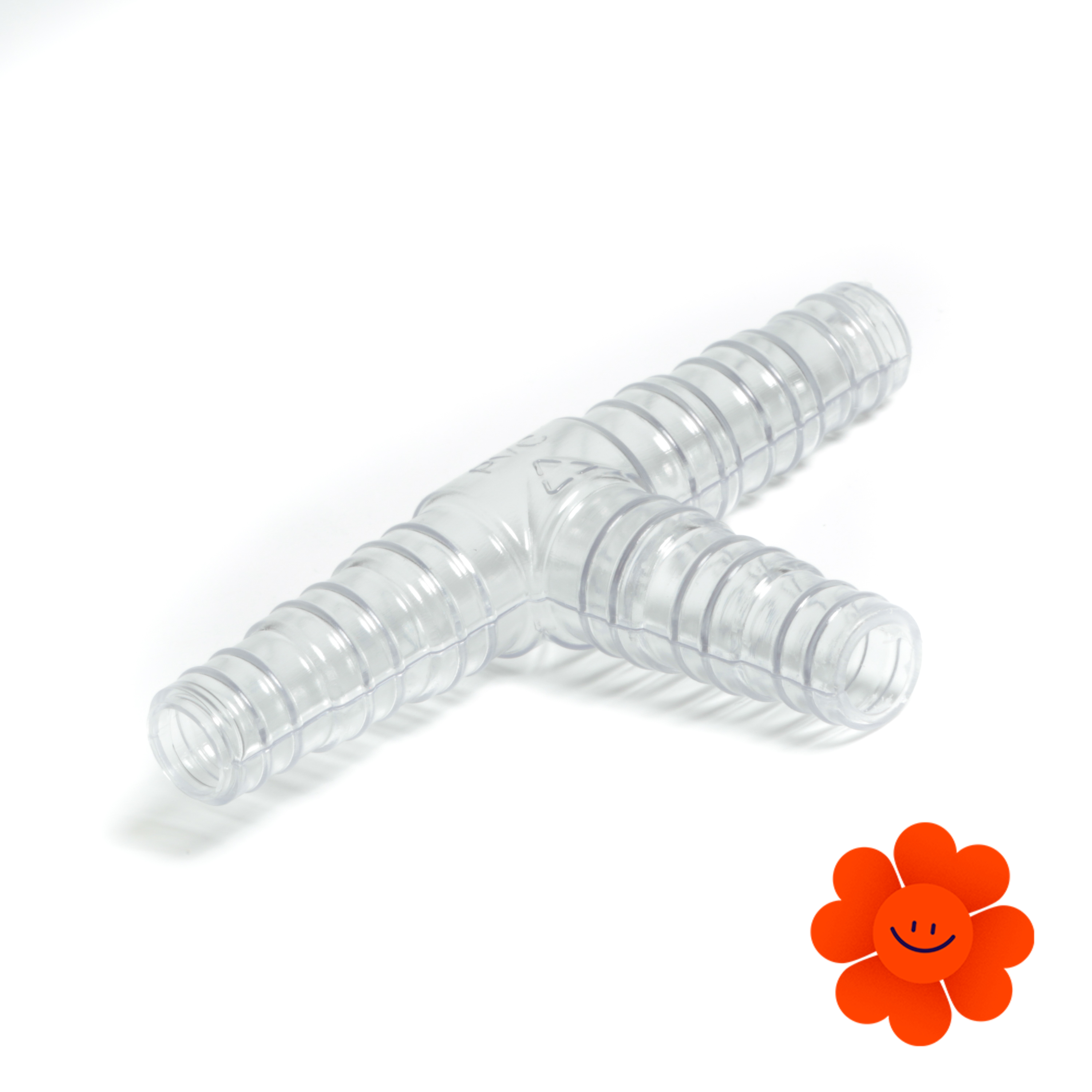 Der Verbinder T hergestellt aus transparentem PVC dient zur Verbindung der Strecke von Kondensschläuchen der Kondensableitung.