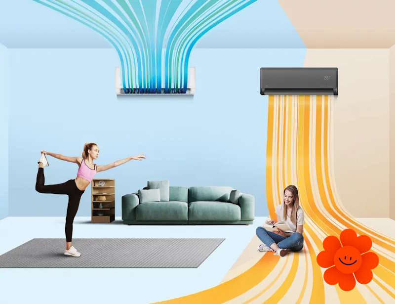 - Im Heizbetrieb strömt die warme Luft nach unten und sorgt für eine behagliche und gleichmäßige Wärme.