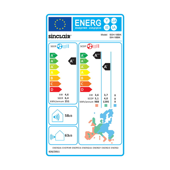 Die Klimaanlage Sinclair Keyon SIH-18BIK + SOH-18BIK hat die Kühlleistung 4,6 kW, die Heizleistung 5,2 kW und ist für Räume bis 45 m2 bestimmt.