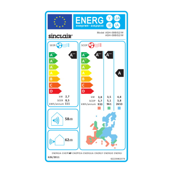| Energieeffizienzklasse - Heizen | A+++ | |