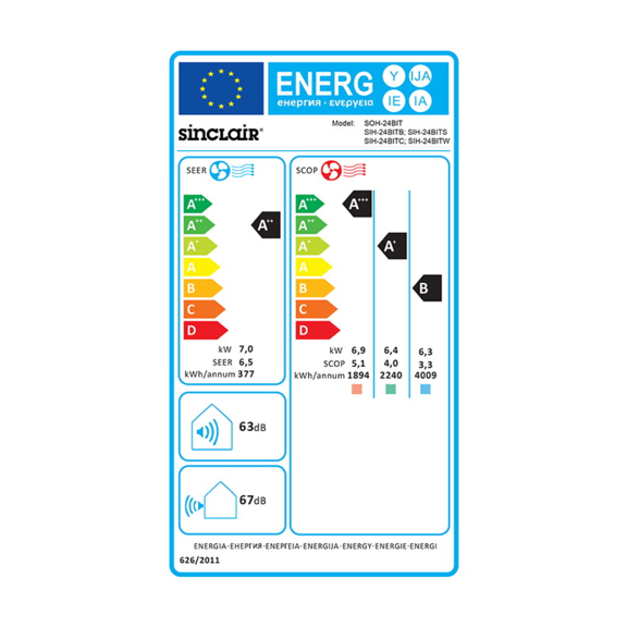 Die Klimaanlage Sinclair Terrel SIH-24BIT2 + SOH-24BIT2 hat die Kühlleistung 7,0 kW, die Heizleistung 7,4 kW und ist für Räume ab 45 m2 bestimmt.