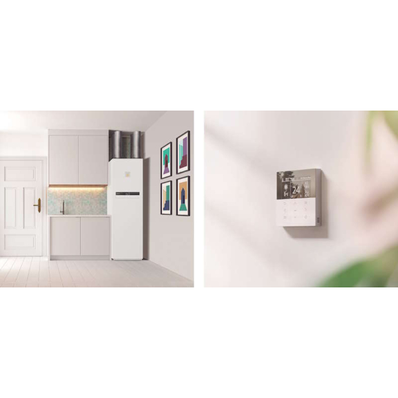 Sie nutzt die Luft-Wasser-Technologie, die bis zu 80 % der Wärme kostenlos aus der Umgebungsluft gewinnt und Heizen, Kühlen und Warmwasserbereiten ermöglicht. Sie ist mit Fußbodenheizung, Heizkörpern und Gebläsekonvektoren kompatibel und lässt sich dank der 2-Zonen-Regelung flexibel an die Bedürfnisse des Haushalts anpassen.