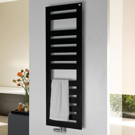 Die glatte Oberfläche verleiht dem Heizkörper ein elegantes Aussehen, während das dreieckige Profil des Rahmens für optische Leichtigkeit sorgt und sein modernes Design unterstreicht. Für noch mehr Flexibilität und Komfort sorgen optional erhältliche variable Handtuchhalter. Ein hoher Strahlungswärmeanteil garantiert den höchsten Komfort, während die leichte und subtile Konstruktion die Ästhetik betont.